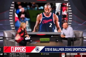 体育资讯9月5日讯 今早,快船老板鲍尔默现身ESPN节目《SportsCenter》,和知名女记者Ramona Shelburne进行对话。