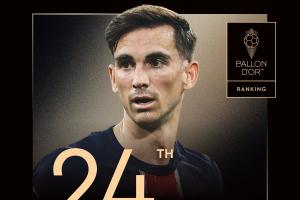 体育资讯9月23日讯 2025年金球奖排名陆续公布,29岁的巴黎圣日耳曼中场法比安-鲁伊斯排名第24位,生涯首次入围。