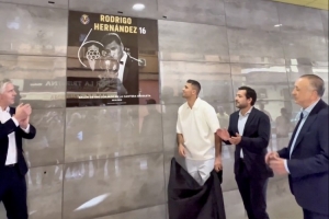体育资讯10月21日讯 比利亚雷亚尔俱乐部在主场外的“金色大道”为青训出身的球员、2024年金球奖得主罗德里举行了画像揭幕仪式,以此向这位成长于俱乐部并在世界足坛取得非凡成就的中场巨星致敬。